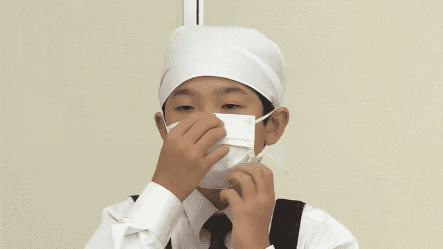 そでをまくり、マスクをする