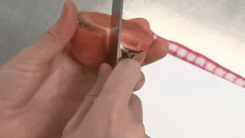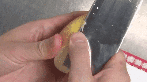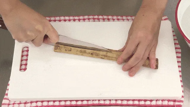 はしを少し残して切る