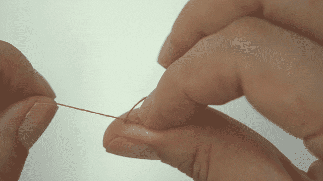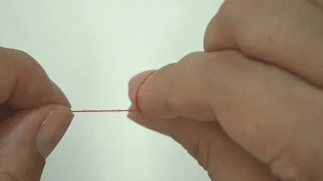 より合わせたところをおさえ、糸を引く