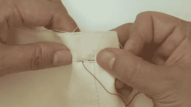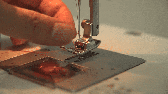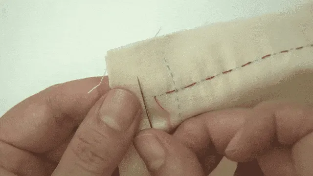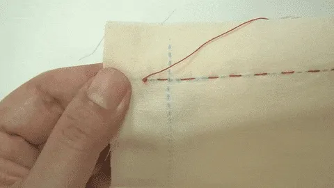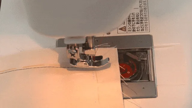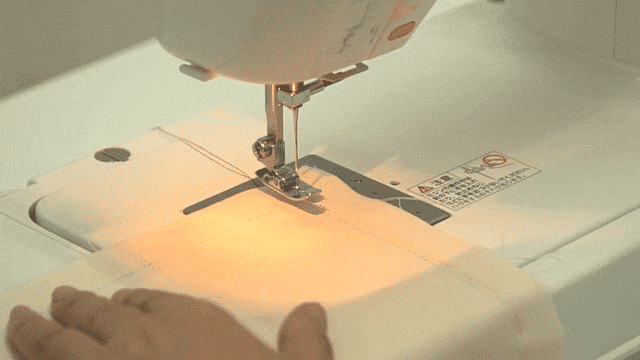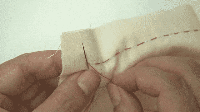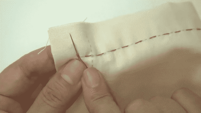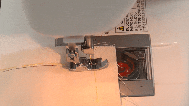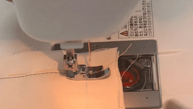 はりを半分もどしながらぬう