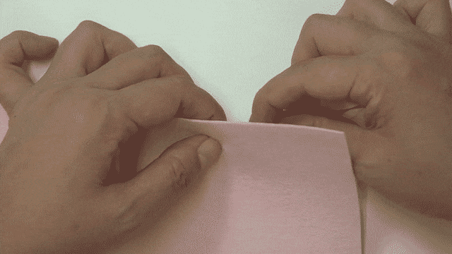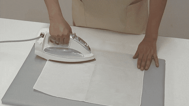ぬいしろの半分とできあがり線でぬのを折る
