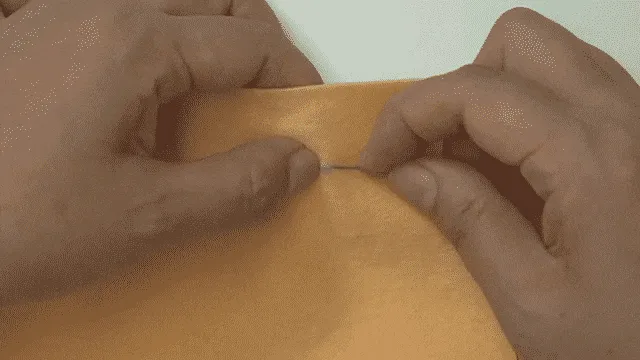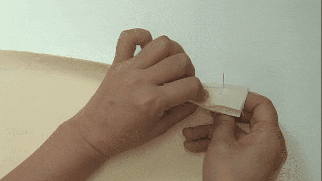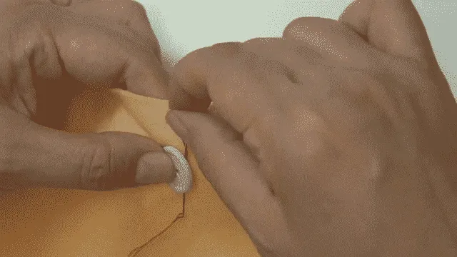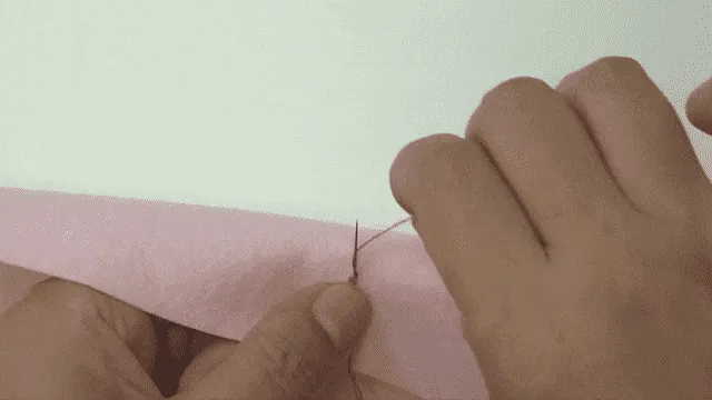 ぬののうらからはりをさし、あなに通す