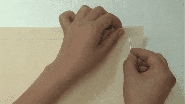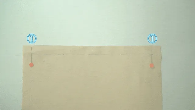 上下のぬののしるしに針をさす