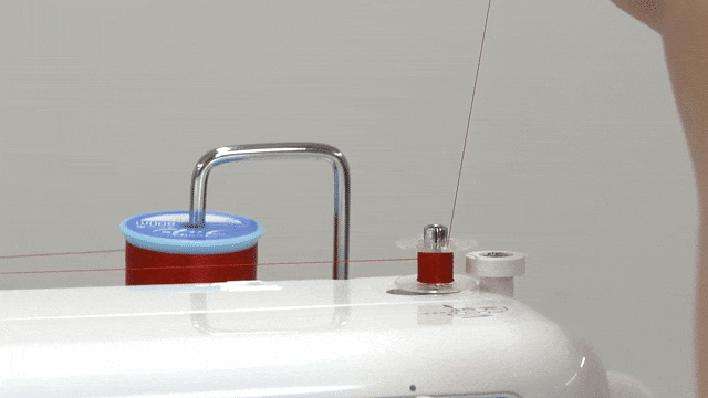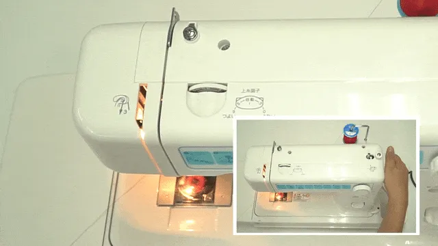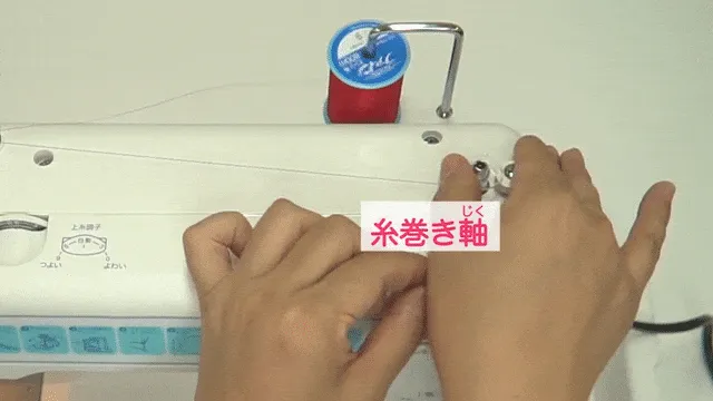 ボビンの内側から糸を通して、いとまきじくにさす