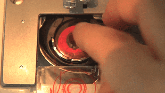 左まきになるようにボビンを入れ、糸をみぞにかける