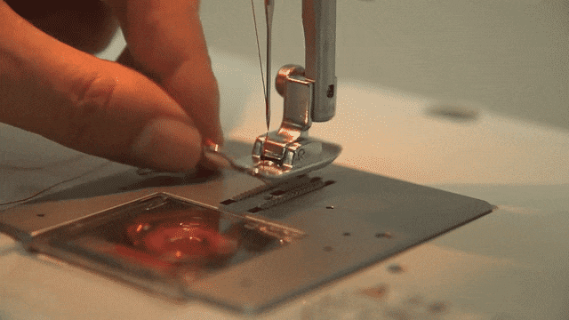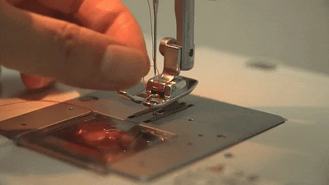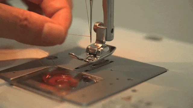 同じ向きにはずみ車を回し続け、はりを上げて上糸をゆっくり引く